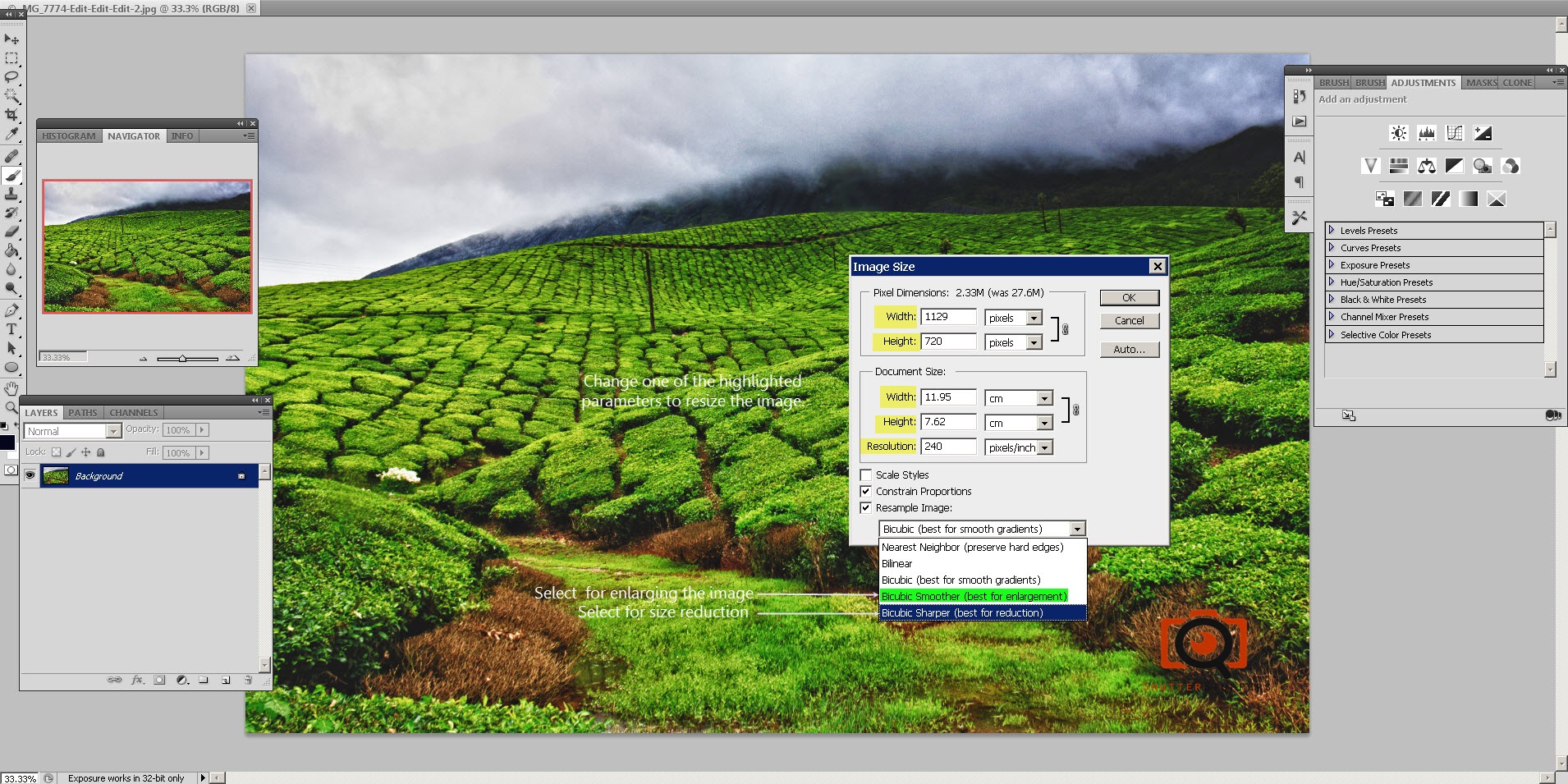 Steps to resize images in photoshop