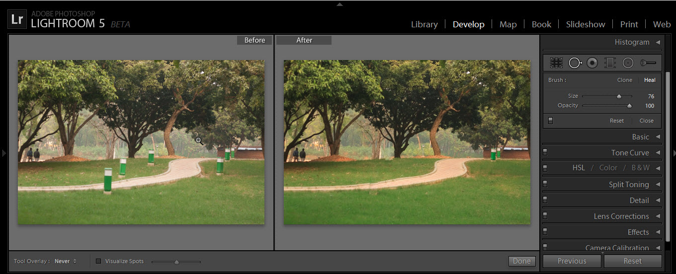 Advanced Healing brush tool: With this improved tool, you can easily remove elements in photographs. If you want to remove something in a photograph, just brush over it and lightroom will find a suitable match. It is very easy to use, and the result is really impressive.