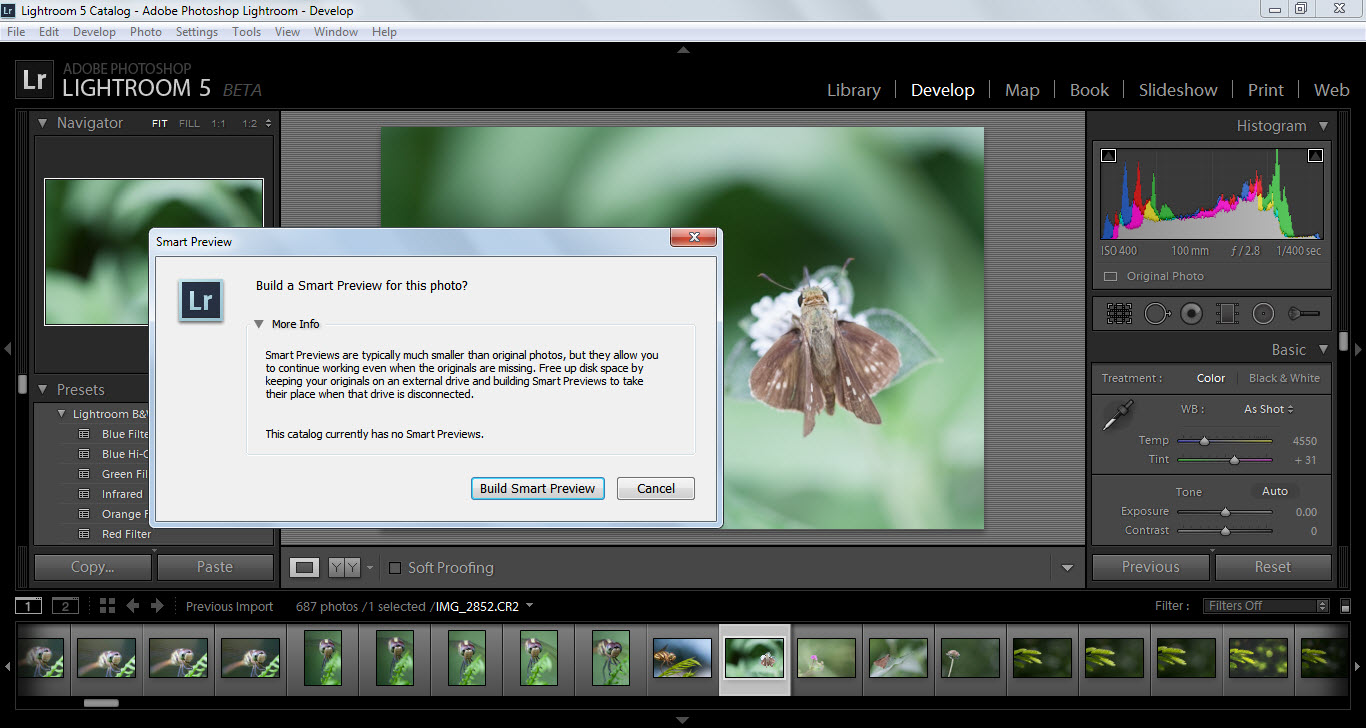 Smart preview: This is one of the cool features I like in this version. Infact, it is one of my favourites. Smart preview allows you to work with small version of the original image files so that you don’t have to connect to your image library while processing the images. This is quite useful for those who use external hard drive for storing lightroom catalog.