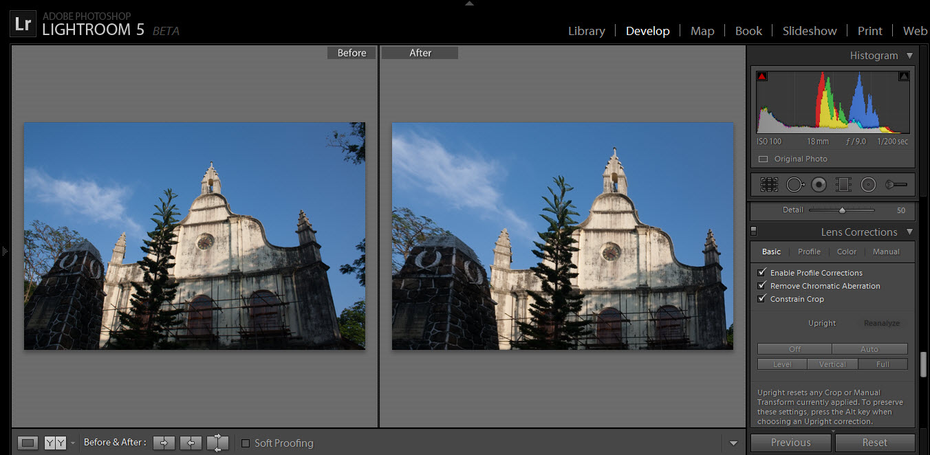 Upright: This feature automatically corrects perspective and tilt in photographs. So you don’t have to spend hours correcting it in photoshop. This is one of the improvements I was expecting to see in lightroom. One of the cool things is that it can even correct the tilt even if the horizon is hidden.