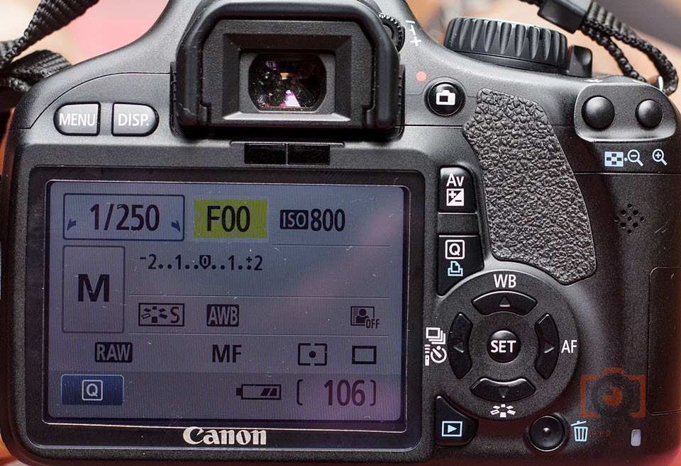 A lens in reverse mount does not have any electronic contact with the camera. So, you cannot change the aperture of the lens from the camera. Because of this, the camera displays the f-number as f00 (as shown in the picture) Then, how do you change the aperture? Well, it depends on the lens you are using: